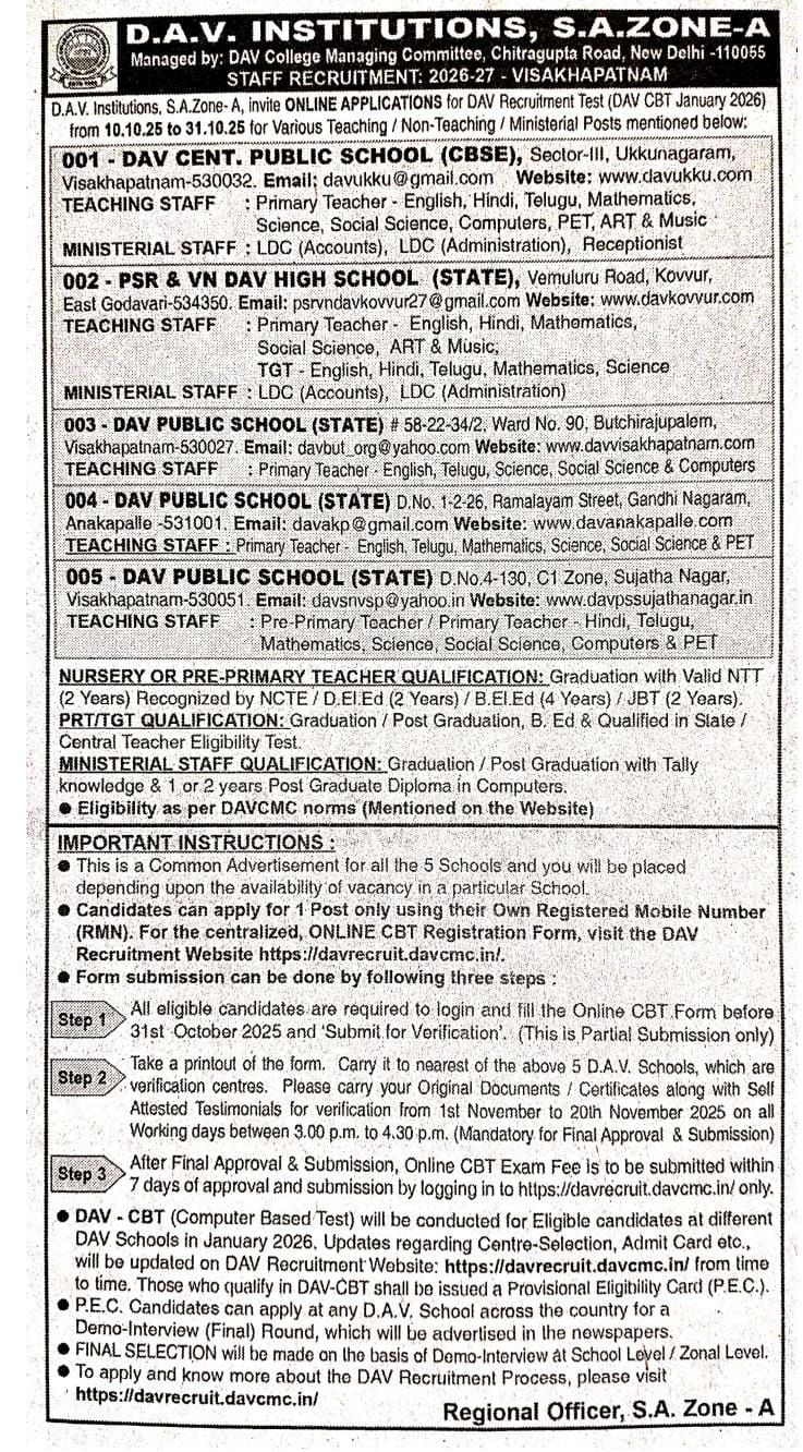 DAV Centenary Public School, Ukkunagaram is a co-educational, English Medium day school. It was inaugurated on the auspicious day of 15th August 1985 by Dr.Ahuja, Chairman-cum-Manager Director, Visakhapatnam Steel Project based on the agreement between VSP Management and the illustrious